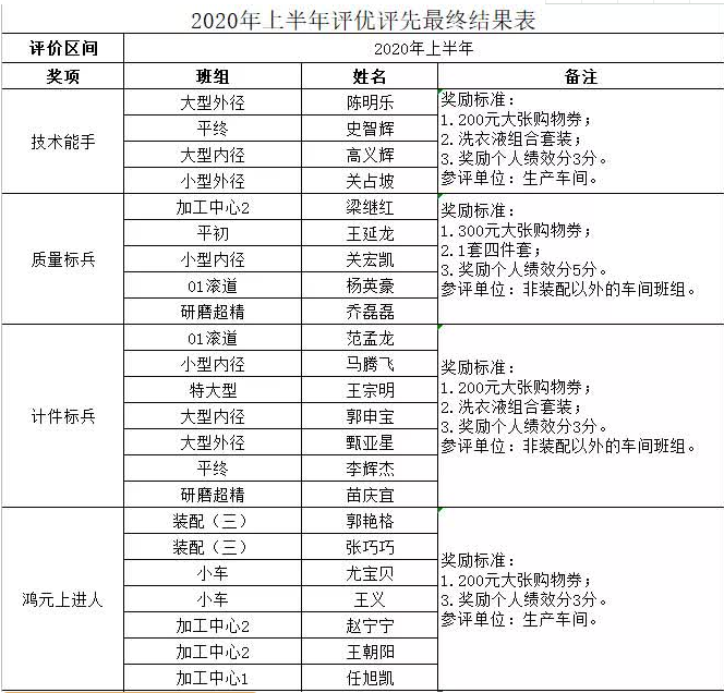 8月18日下午,洛陽鴻元軸承在生產(chǎn)車間員工休息區(qū)舉行了2020年上半年評優(yōu)評先表彰大會。就上半年度涌現(xiàn)出來的技術(shù)能手、優(yōu)秀員工、…